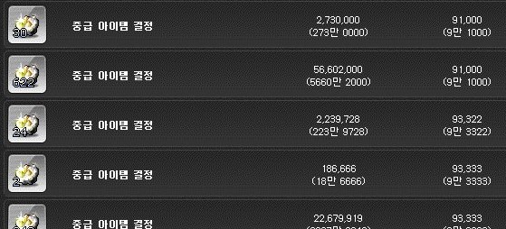 중급 아이템 결정은 개당 9만 메소. 10개를 구매하면 90만 메소.
