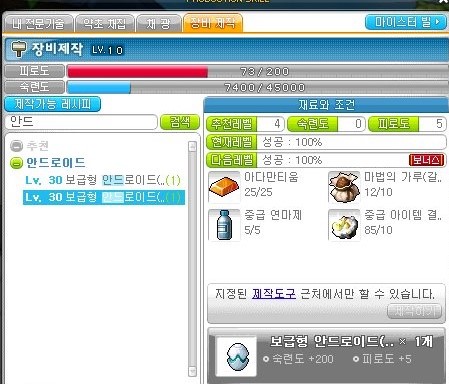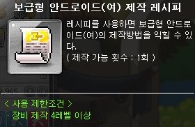 메이플스토리 고급형 안드로이드(남, 여) 제작하기 (레시피, 재료, 가격)
