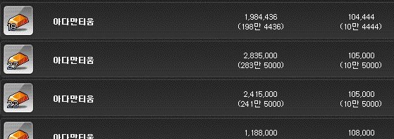 아다만티움은 개당 10만메소. 25개를 구매하면 250만 메소.