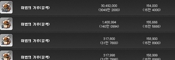 마법의 가루(갈색)은 개당 15만 메소. 10개를 구매하면 150만 메소.