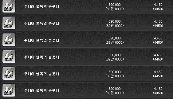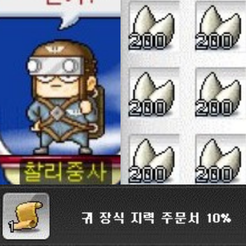교환할 수 있는 아이템은 꽤나 많다. 하지만 얻으려고 하는 귀 장식 지력 주문서는 주니어 불독의 송곳니 교환으로만 얻을 수 있다. 참고바란다.
