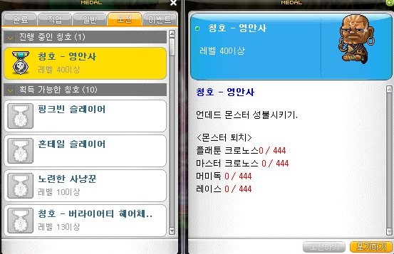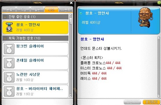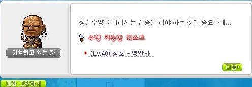 영안사 칭호를 도전해 준다. 40레벨 이상부터 도전할 수 있다.
