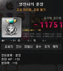 MP +33, 방어력 +10의 훈장이다. 옵션은 쓰레기이다.
