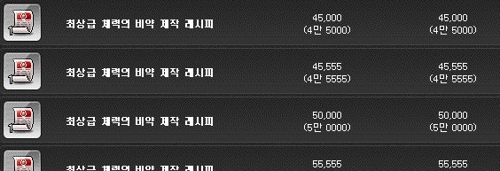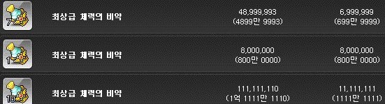 최상급 체력의 비약은 개당 700만 메소에 판매되고 있다.