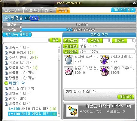 비약은 3개가 만들어 지므로 한번 만들 때 마다 2100만 메소를 얻을 수 있다.