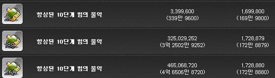 향상된 10단계 힘의 물약은 개당 170만 메소이고, 5개를 구매하면 850만 메소 지출.