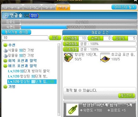 오늘은 연금술 돈벌이 6탄, 향상된 10단계 힘의 알약을 준비했다.