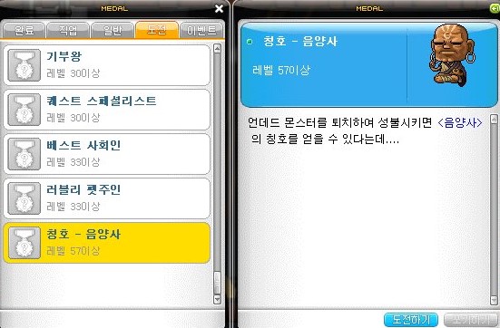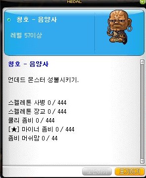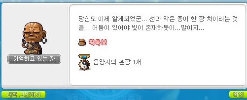 퀘스트를 완료하여 음양사의 훈장을 획득하였다.