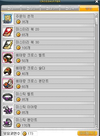 때문에 크로스헌터를 깨고, 보스를 많이 돌았다면 십자 코인이 상당히 많이 쌓여 있을 것이다.