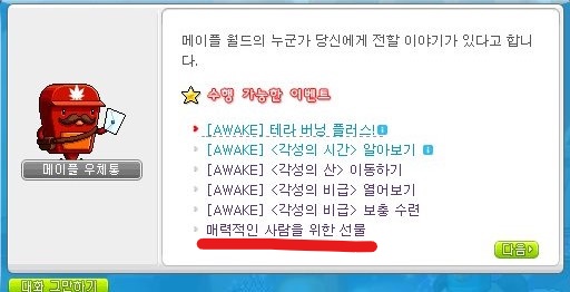 '매력적인 사람을 위한 선물'이라는 퀘스트 하나가 올 것이다.