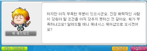 퀘스트를 수락하고 '장미꽃 한 송이'를 들고 헤네시스 헤어샵으로 가면 된다.
