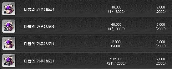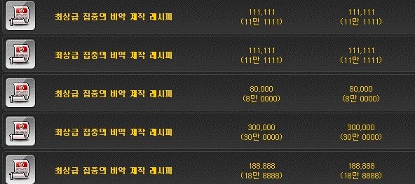 레시피는 경매장에서 10~30만메소 정도에 구매할 수 있다.
