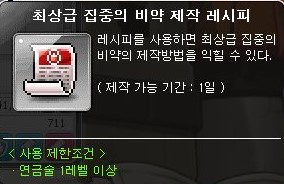 이 비약은 한번 제작에 3개가 만들어 지므로 360만 메소를 얻는 셈이다.
