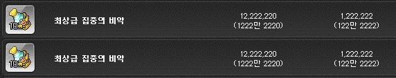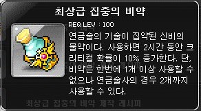 최상급 집중의 비약은 경매장에서 120만 메소에 판매되고 있다.