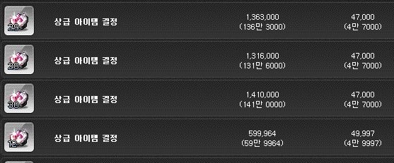 상급 아이템 결정은 개당 4만 7천 메소이다.