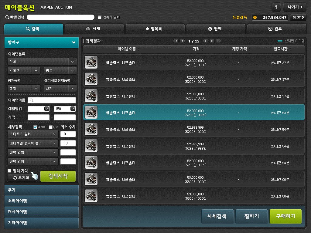 에픽이 달린 앱솔랩스 숄더를 약 7900만 메소에 판매 완료했다.