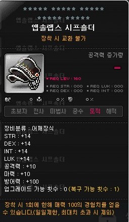직업은 상관없으며, 그냥 가장 싼 앱솔랩스 숄더를 구매해주면 된다.
