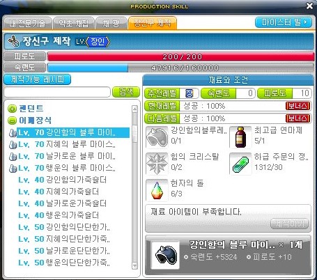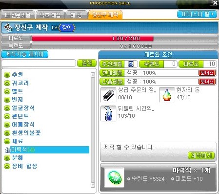 그래서 내가 만든 아이템은 마력석과 직업별 마이스터 심볼만을 만들었다.