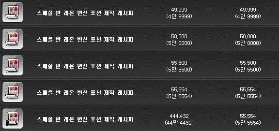 오늘은 연금술 돈벌이 9탄, 스페셜 반 레온 변신 포션을 준비하였다.