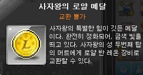 사자왕의 로얄 메달은 경매장에서 구매할 수 없고, 본인이 반 레온을 잡아서 얻을 수 있다.