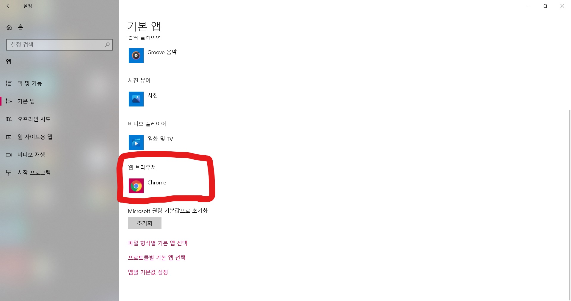 크롬이 더 편하고 좋은 것 같아서 기본 웹 브라우저를 변경하였는데