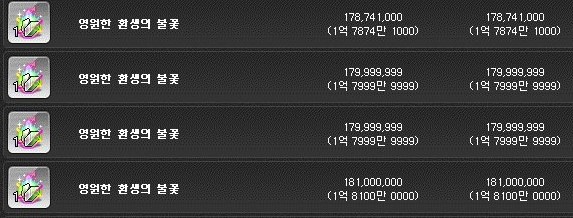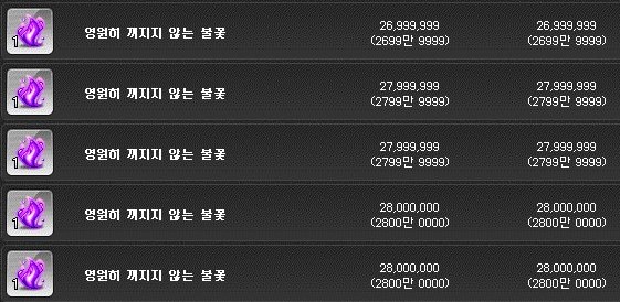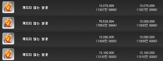 영원히 꺼지지 않는 불꽃은 개당 2700만 메소 부근에 구매하였다.