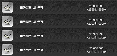 미카엘의 새 안경은 3천만 메소에 판매되고 있다.