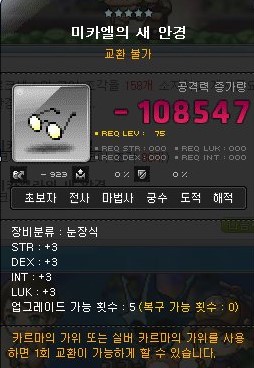 그에 반해 미카엘라의 새 안경은 올스텟 3%가 붙으면 6500만 메소 이상이다.
