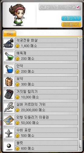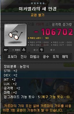 올스텟 3% 미카엘라의 새 안경을 하루만에 6500만 메소에 판매하였다.