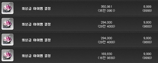 최상급 아이템 결정은 개당 9천메소에 구매하였다.