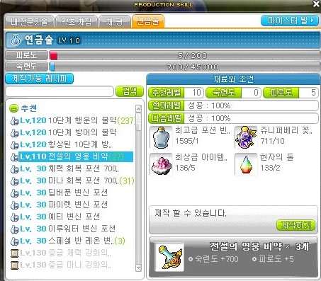 메이플스토리 연금술 돈벌이 <7> 최상급 집중의 비약 (레시피, 재료, 가격)