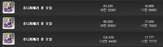 쥬니퍼베리 꽃 오일은 개당 1만 6천메소에 구매하였다.