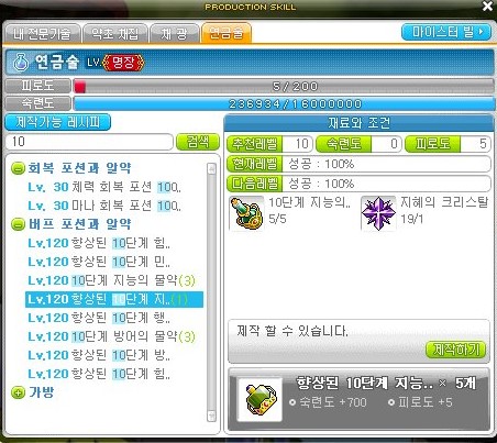 아무튼 10단계 지능의 물약을 만드는데 드는 비용은 540만 메소이다.