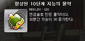 향상된 10단계 지능의 물약은 30분간 지능이 30 증가하는 물약이다.