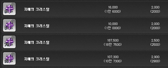 지혜의 크리스탈은 개당 2000메소이다.