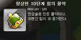 향상된 10단게 힘의 물약은 30분간 힘이 30 증가하는 물약이다.