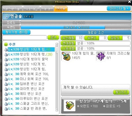 아무튼 10단계 힘의 물약을 만드는데 드는 비용은 540만 메소이다.