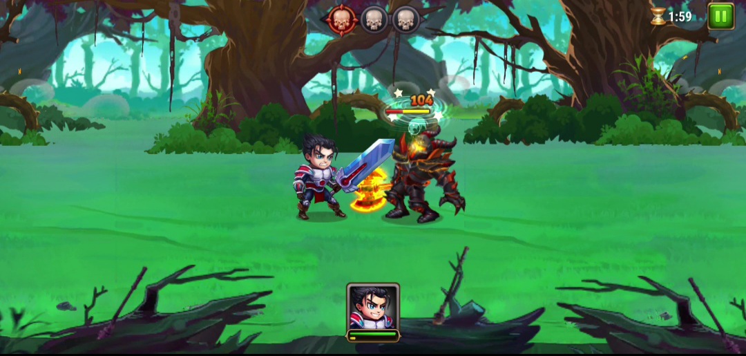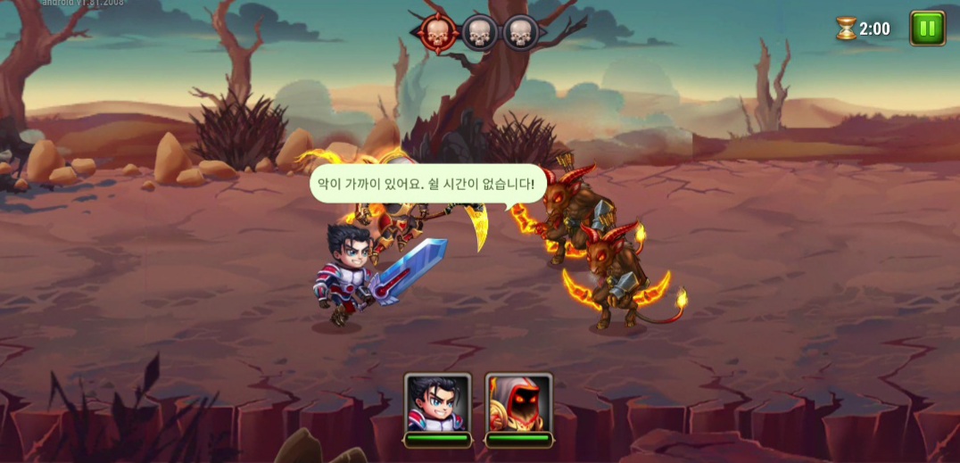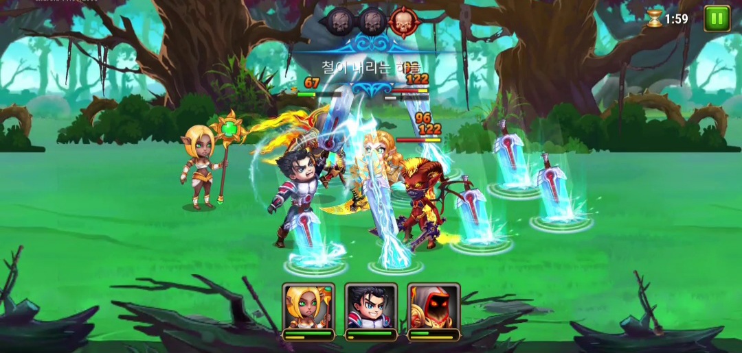 서로 공격을 하고 스킬 게이지가 차면 밑에 초상화를 눌러 스킬을 사용할 수 있다.
