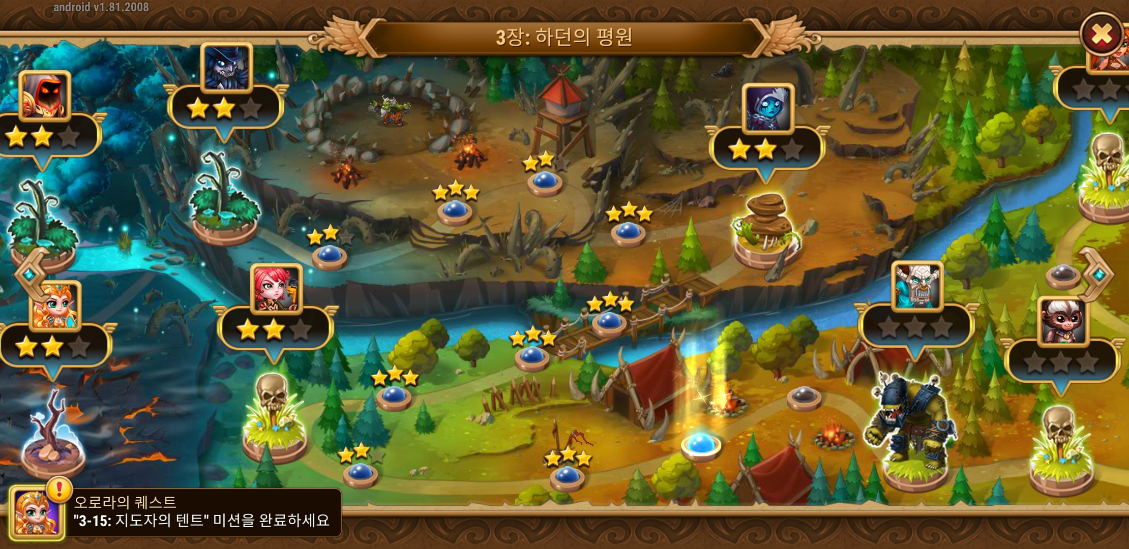 히어로의 레벨을 높이고 스킬 레벨을 높여 스펙업을 할 수 있었다.