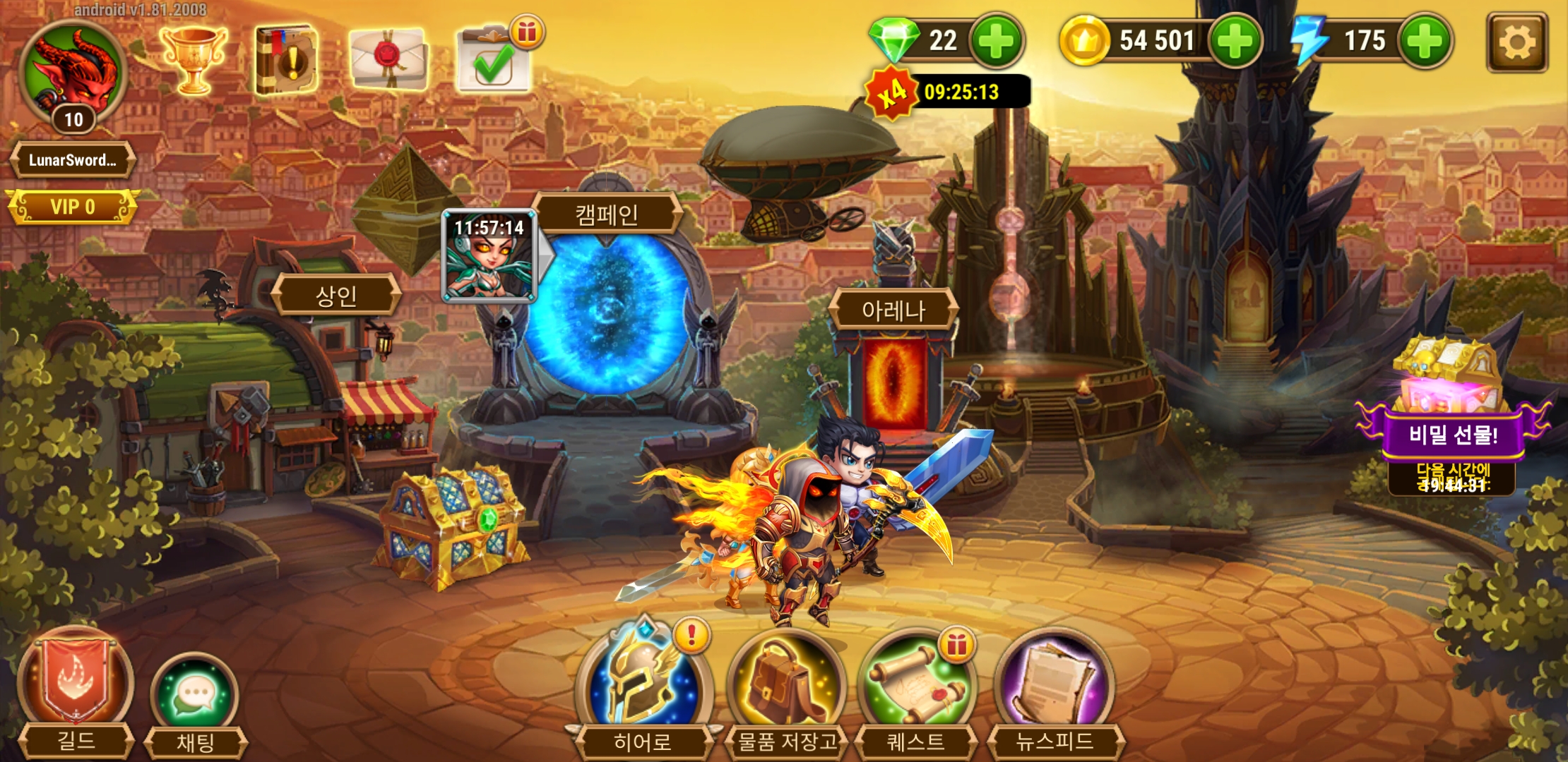 로비 화면인데, '캠페인'은 전에 본 던전 돌이 콘텐츠이고