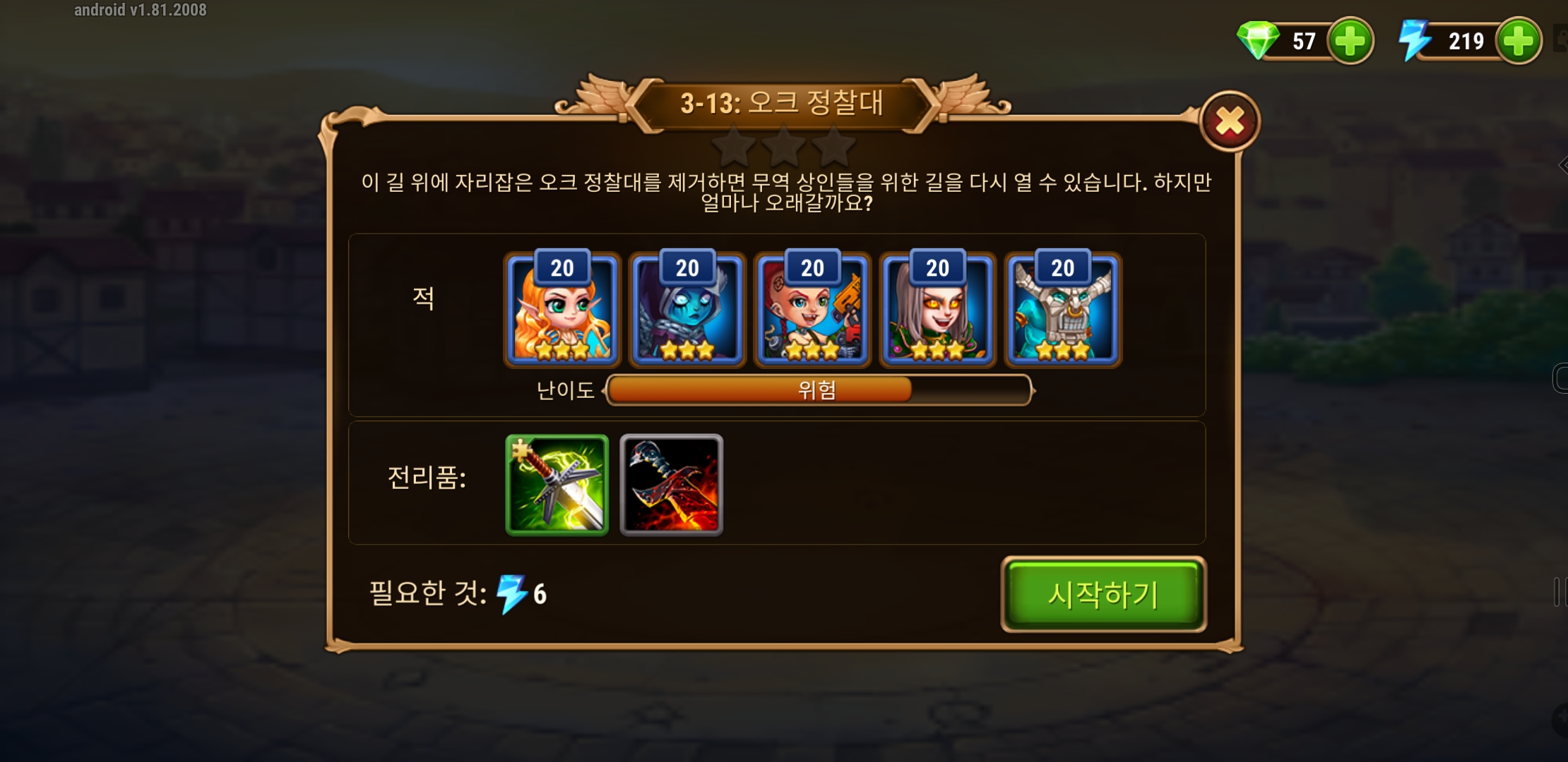 돈과 보석을 다 써서 스펙업을 최대한 해보았지만 3-13을 클리어하지 못했다.