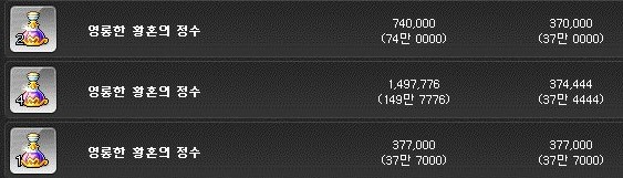 상급 주문의 정수는 개당 약 3만 7천메소이다.