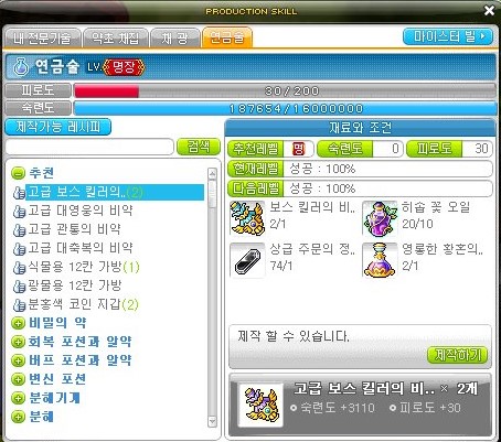 메이플스토리 보스 킬러의 비약 제작 (재료, 가격)