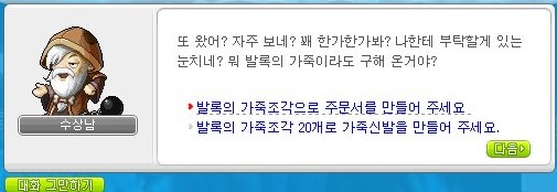 발록의 가죽조각은 수상남에게서 주문서나 발록의 가죽신발로 교환할 수 있는데
