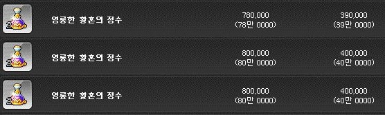 영롱한 황혼의 정수는 개당 40만 메소이다.