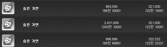 슬픈 가면은 개당 22만 메소에 판매되고 있다.