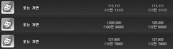 웃는 가면은 개당 11만 메소에 판매되고 있다.