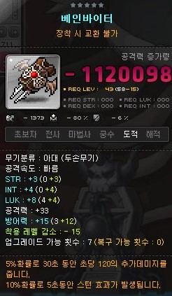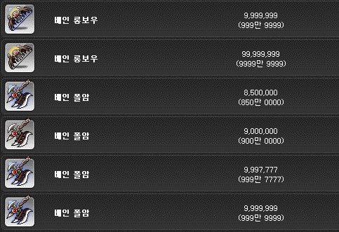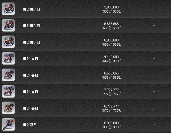 베인 무기들은 때에 따라 다르지만, 300만 메소부터 비싸게는 1천만 메소에도 판매가 된다.