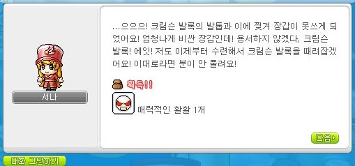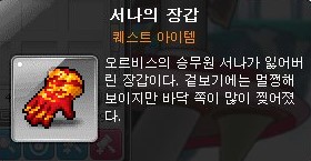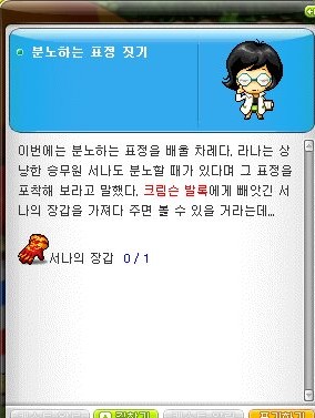 다시 본론으로 분노하는 표정 짓기 퀘스트는 서나의 장갑을 가져다 주는 퀘스트이다.
