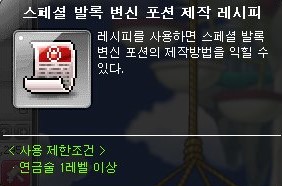 잘 나오지는 않지만, 가끔 스페셜 발록 변신 포션 제작 레시피를 준다.